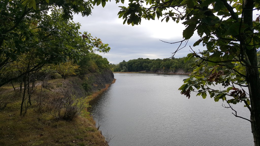 Peebles Island is an island in the Mohawk River near Albany, NY where the Mohawk connects to the Hudson River. There is an old textile factory – or something like that from what I remember. There’s a great trail around the edge of the island and I think a few through the middle – I just did the trail around the edge of the island. What impressed me the most were the high cliffs with steep drop-offs straight down into the river. Quite a few deer there as well and some woodchucks.